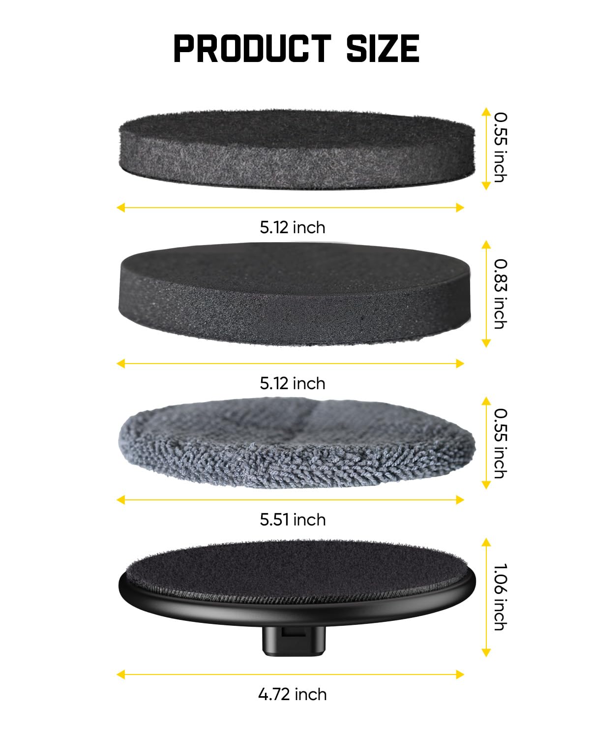 - 4-in-1 Brush Head Set: Includes three specialized brush heads (Sponge Brush, Fabric Brush, Wool Brush, Pad Holder), designed for deep cleaning in bathrooms, shower walls, sinks, glass, windows, and more—perfect for tackling a variety of tough cleaning tasks