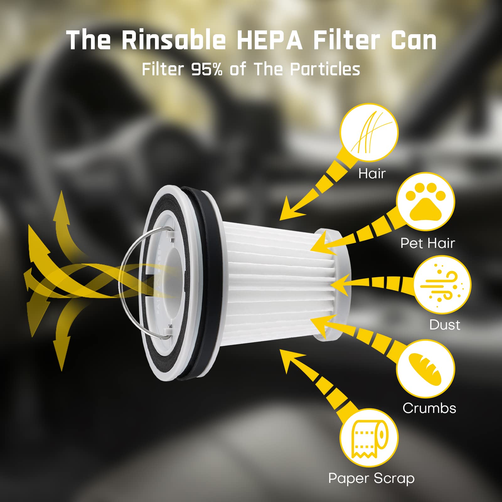 - Washable & Reusable: HEPA 11 filter can be easily washed and easy to install, just take apart the dust cup, rotate and take out the HEPA filter replace the new filter