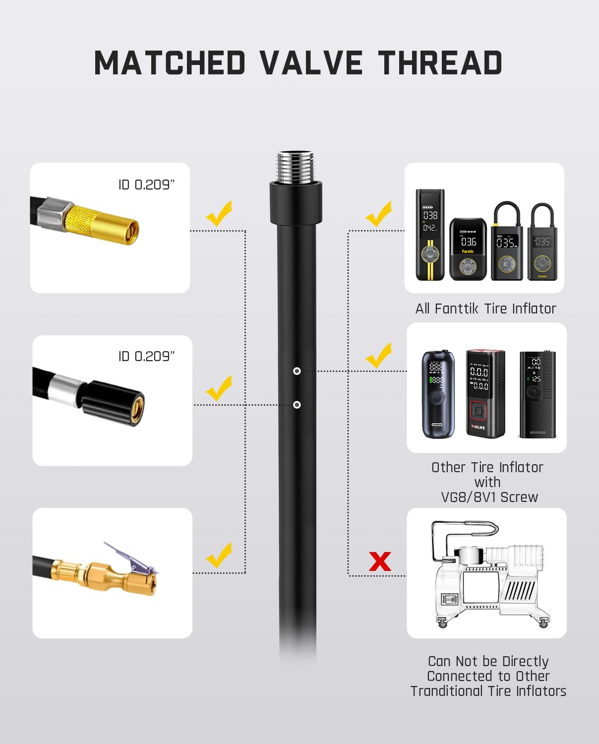 - [More Functional] This is not only an inflator hose adapter to convert twist-on air chuck to lock-on air chuck, but also can be specially connected to Fanttik X8 & X8 APEX tire inflator directly. The hose end thread is standard US fine thread connection (0.305’’ x 32 TPI) , which is the Same as USA Schrader Valve.