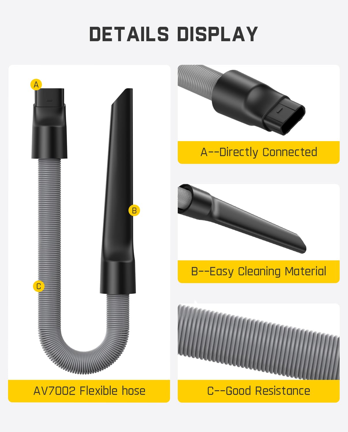 - Efficiently Cleaning: Our extension hose for vacuum cleaner arbitrary stretching and bending, can be extended to a confined space, versatile enough to tackle the trickiest cleaning tasks, such as in the Car seat, high ceilings, or tight spaces and behind the cabinet